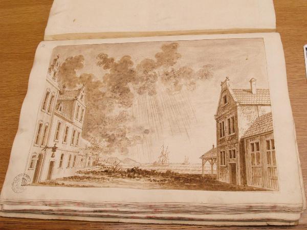 - NOTIZIE STORICO CRITICHE "Molto tardo. Di mano di Giovannino." (Viale Ferrero 1963)\nIl disegno fa parte dell'album "K I 18" recante la scritta "N.9 Rovine Porti di Mare Città esterne Sepolcri e Camere rustiche d'Invenz. di Gio. Galliari in n.o 73". Come per l'album K I 17, questa scritta sembrerebbe successiva ai disegni. Viale Ferrero (1963) precisa che " l'indicazione 'Gio. Galliari' non è esatta; né se si riferisce a Giovanni Antonio perché si trovano molti disegni certo posteriori alla sua morte; né se si riferisce a Giovannino perché molti altri disegni sono datati in anni in cui egli era ancora bambino. Disegno non identificato. Viale Ferrero (1963) vi riconosce la mano di Giovannino Galliari.