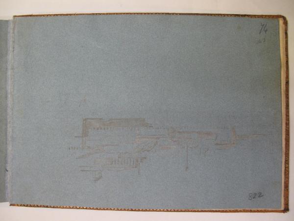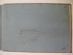 Schizzo idealizzato di panorama di città classica (Atene?). veduta di città
