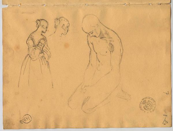 Donna e nudo inginocchiato. figura maschile e figura femminile