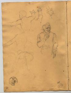 Figure maschili e studio di mani e braccia (già Uomo a mezzo busto, schizzi vari di giovane in corsa - Samek). figure maschili e braccia