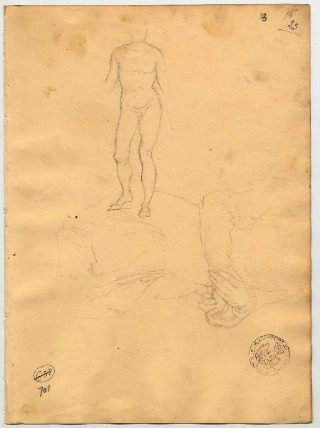 Nudo maschile e studio di mani (già Nudo virile e mezza figura acefala - studio per ritratto - Samek). figure maschili e mani