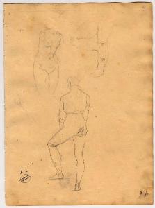 Torso femminile, Uomo di schiena, Studi di arti inferiori. figura maschile, figura femminile, piedi