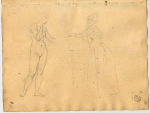 Nudo femminile e figura femminile vestita all'impiedi. nudo femminile e figura femminile