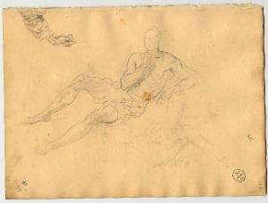 Figura maschile e studio di mano (già Nudo maschile sdraiato - Samek). Figura maschile e mano