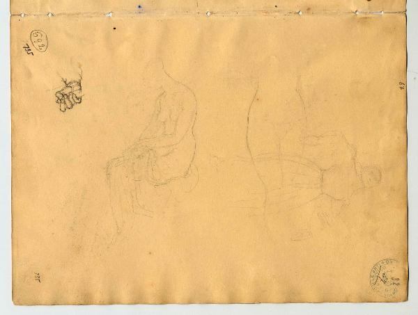 Donne all'impiedi e nudi femminili, studi di mani. figure femminili
