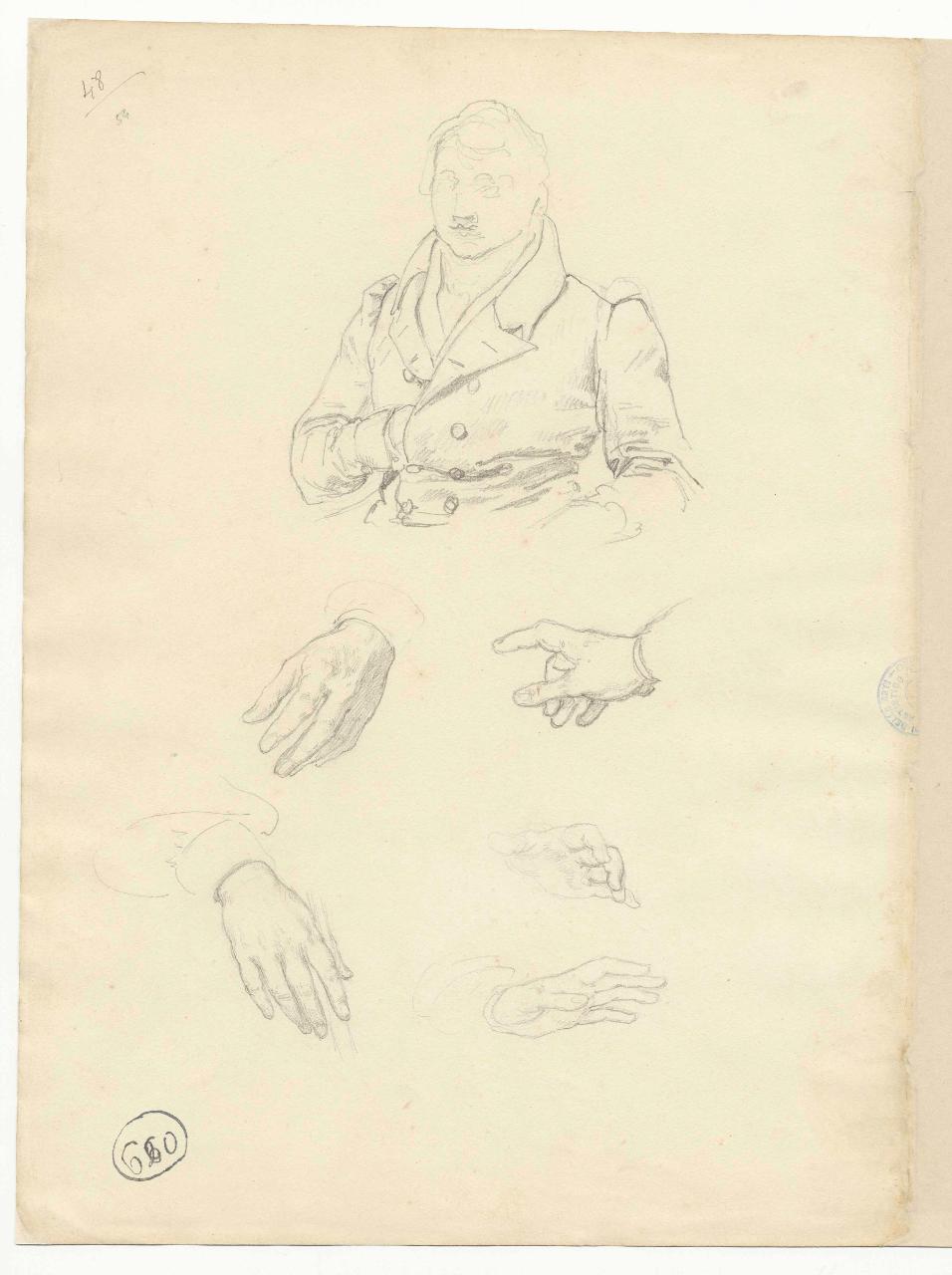 Studio per ritratto virile e mani. figura maschile e mani