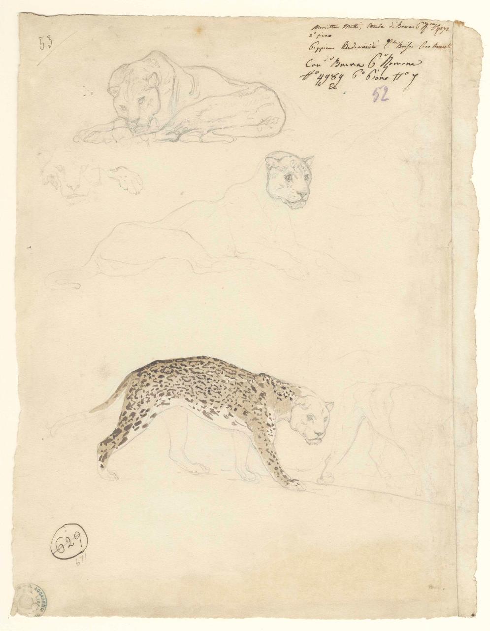 Studio di leone, leonessa e pantera. leone, leonessa e pantera