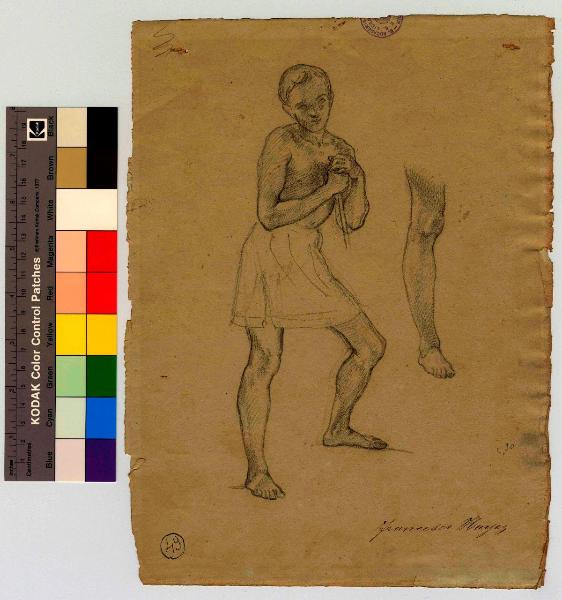 Fanciullo con zufolo. Studio di gamba/ Busto di vecchio. figura maschile, gamba | figura maschile