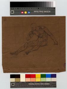 Figura di nudo seduto messa in reticolo/ Atleti. nudi maschili