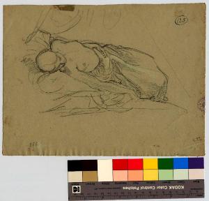Donna coricata col seno scoperto/ Uomo e donna in conversazione. Studio di mano. nudo femminile | figura femminile, figura maschile, mano