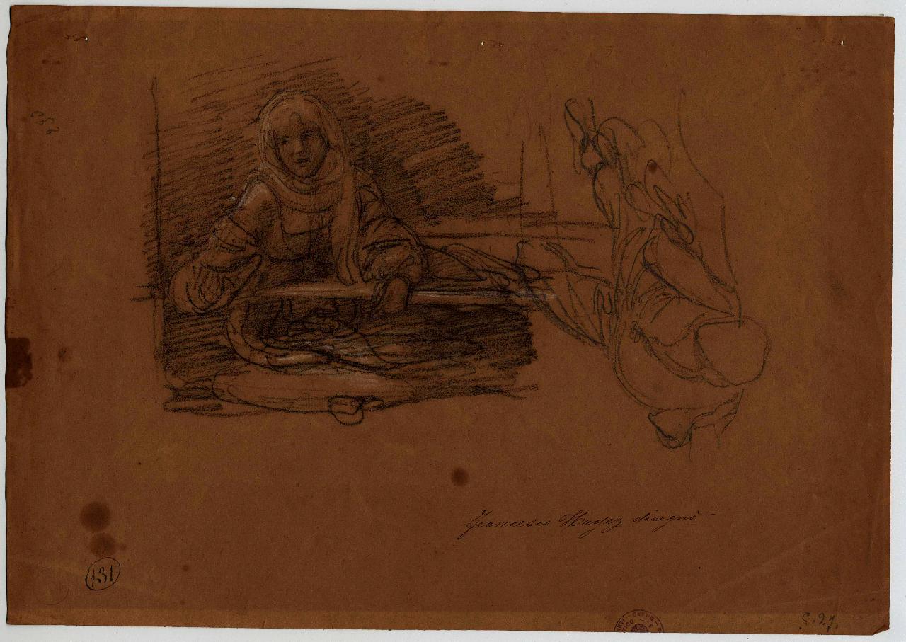 Donna al balcone e Schizzo sommario di figura vista di scorcio/ Donne sdraiate. figure femminile e maschile | figure femminili