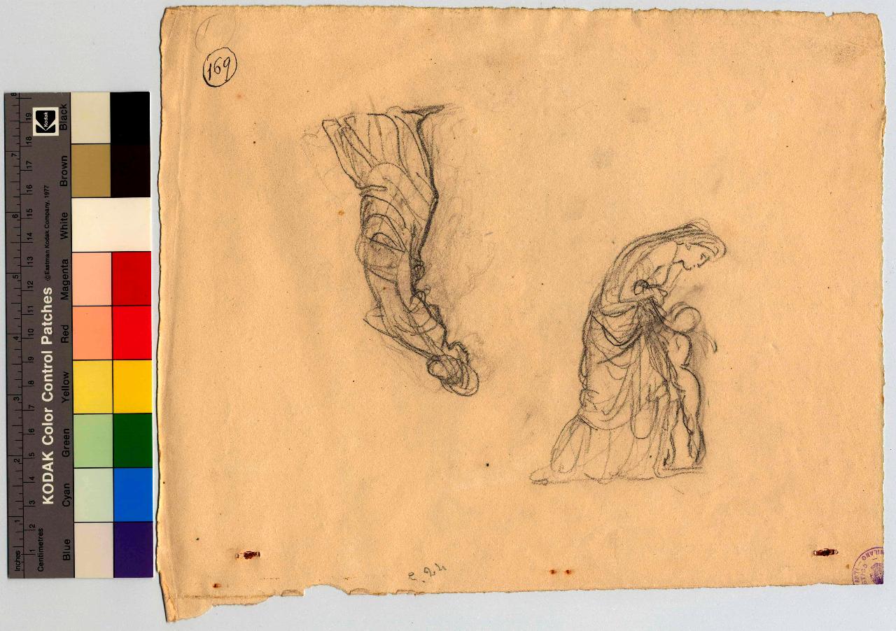 Donna e bambino. Donna chinata in atto di muoversi/ Schizzi di ignudi femminili. figure femminili, bambino | Nudi femminili