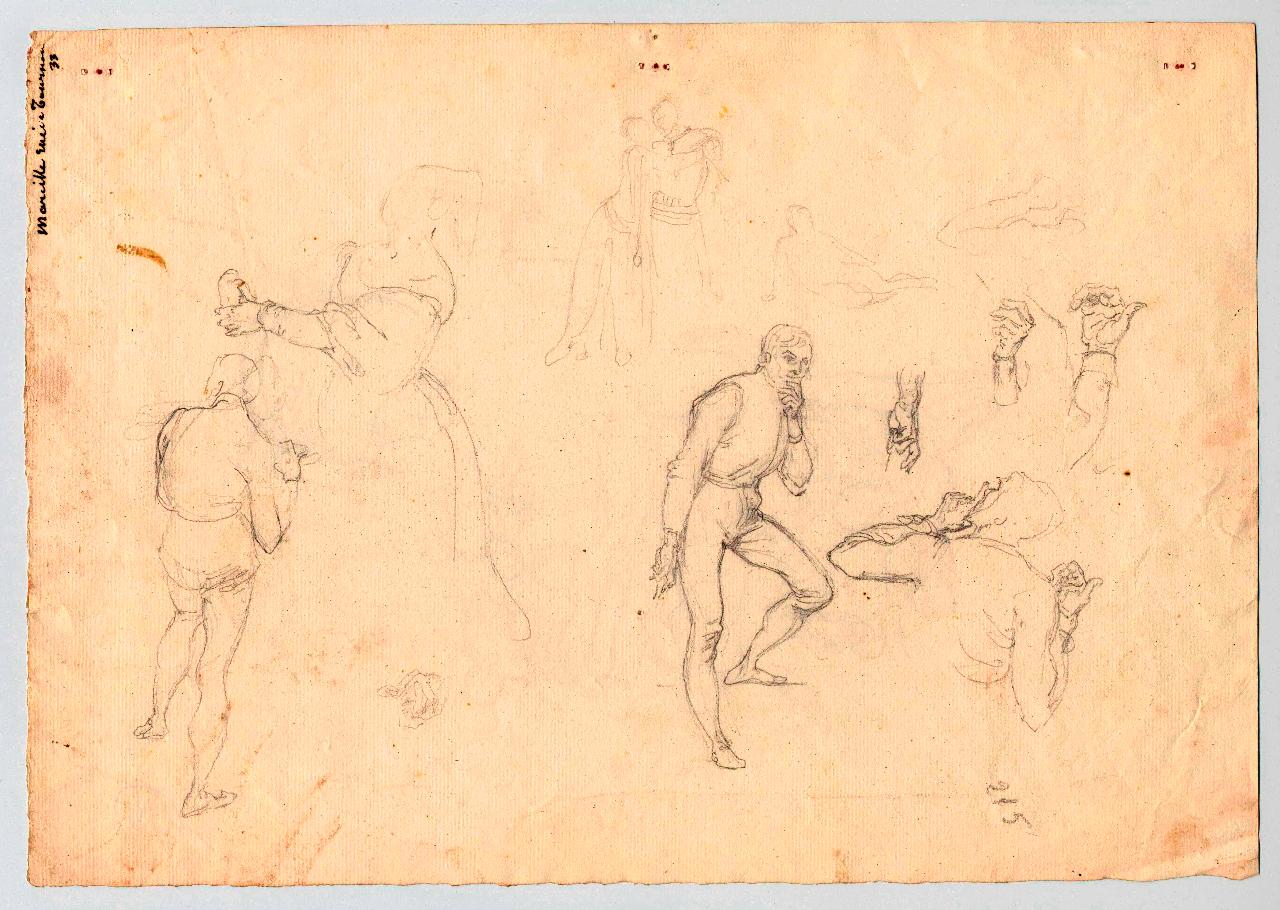 Schizzi vari di figure. figure maschili e femminili, mani