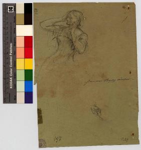 Mezza figura di donna in atto di sgomenta meraviglia. figura femminile