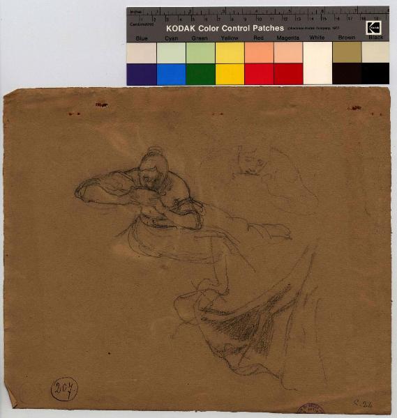 Studio di donna che beve, vista di scorcio. Panneggiamenti (per la "Sete dei Crociati")/ Studio di donna dolente e panneggio. figura femminile che beve, Sete dei Crociati | nudo femminile, panneggio