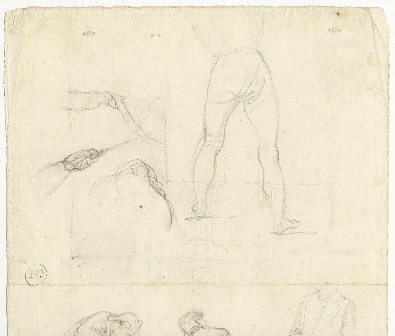 Schermitori (a tergo, di lato, inginocchiati colle armi impugnate). figure maschili, schermitori