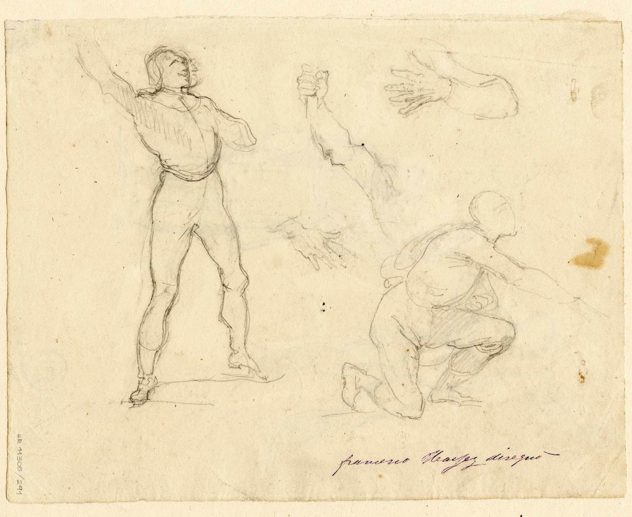 Studio di figure giovanili e mani. figure di giovani, mani