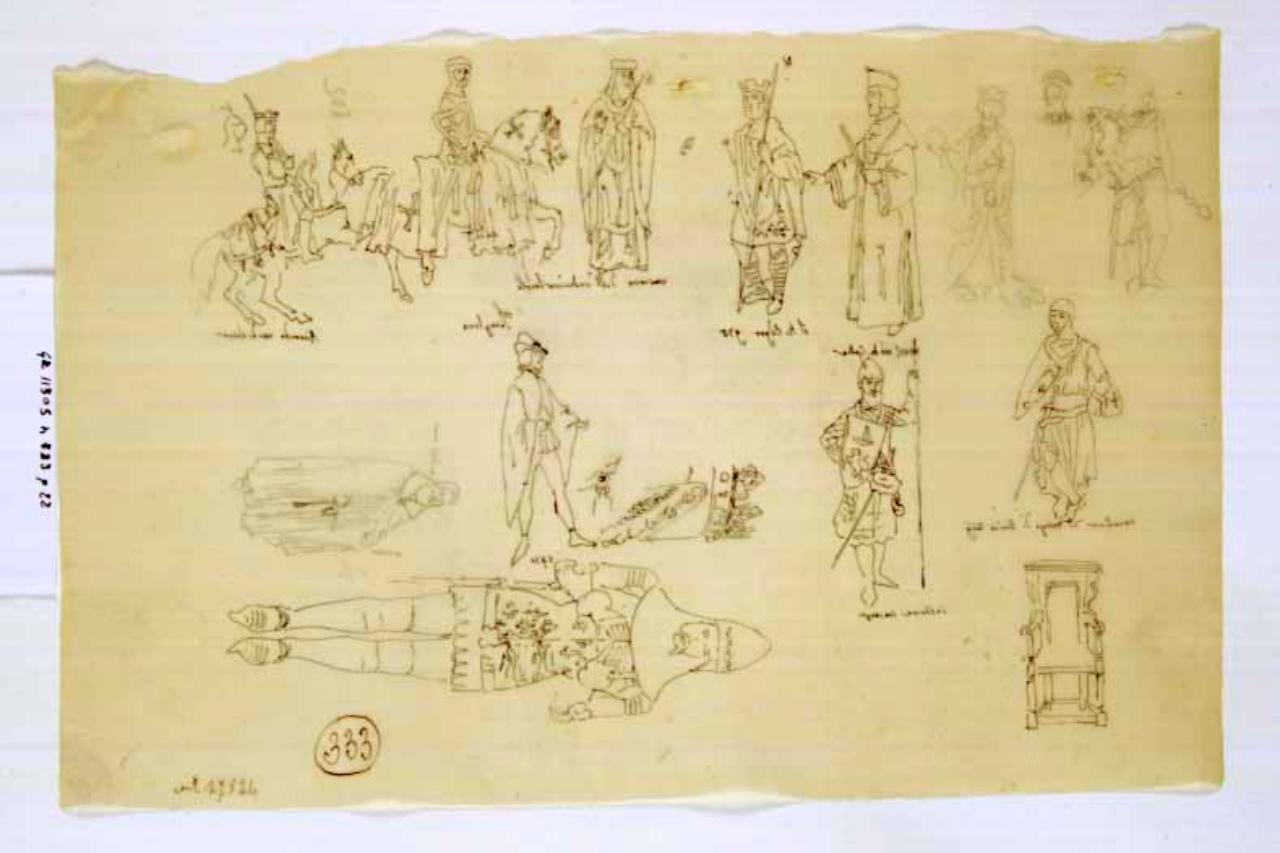 Lucido di studi di costume dell'epoca dei crociati (Enrico III). costumi