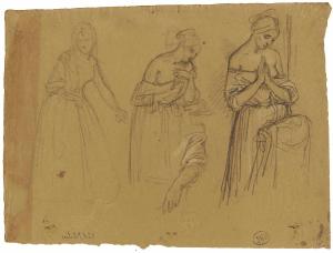 Studi di giovane donna orante/ Studi di panneggio di donna distesa. figura femminile in preghiera | panneggio