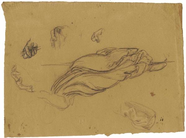 Studi di panneggio di donna distesa. panneggio