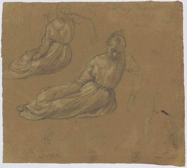 Figura di donna semisdraiata/ Uomo barbato e studio di gambe. figura femminile sdraiata | figura maschile con barba, gambe