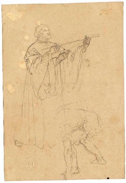 Schizzo di patrizio veneto all'impiedi e di uomo chinato. figure maschili