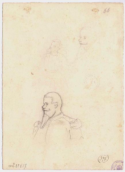 Schizzo di mezza figura di personaggio in uniforme militare ( Vittorio Emanuele II?). Altri schizzi di figura/ Figura di donna. figure maschili | figura femminile