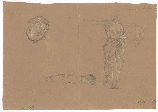 Studi per l'"Alberico da Romano"/ Due figure di donne supplichevoli. figura maschile, figura femminile, braccio | figure femminili