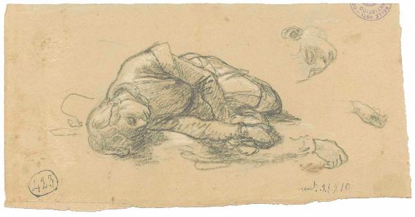Giovinetto caduto. figura maschile e mani