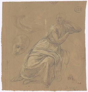 Figura femminile seduta e schizzo di testa. figura femminile e testa
