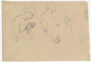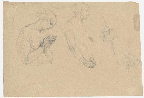 Mezze figure di donne oranti e studi di panneggi. figure femminili oranti, panneggio