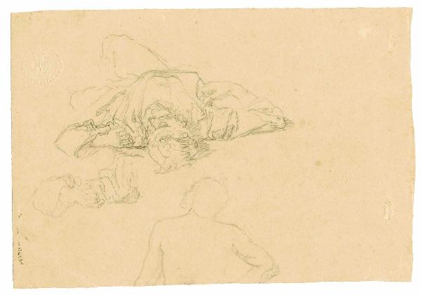 Figura di caduto in iscorcio e mezza figura virile. figure maschili