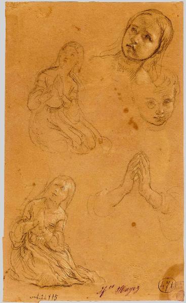 Studio per l'"Alberico da Romano"? (testine di bimbi oranti). figura maschile, bambini