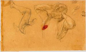 Studio di vegliardo e arti inferiori di figura. figura maschile, vecchio