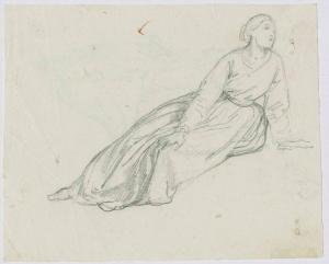 Schizzo di donna sdraiata vista di fronte. figura femminile sdraiata