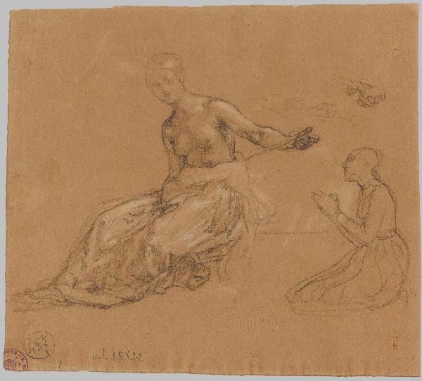 Studio per una Lucrezia. A lato figura di orante. figure femminili
