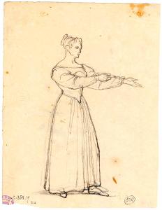 Figura di donna all'impiedi/ Studio per ritratto (Alessandro Manzoni?). figura femminili | testa