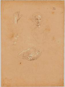 Testa femminile e studi di panneggi. figura femminile e panneggio