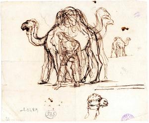 Scena orientale (cammello, donne e bambini). figure femminili, bambini e cammello