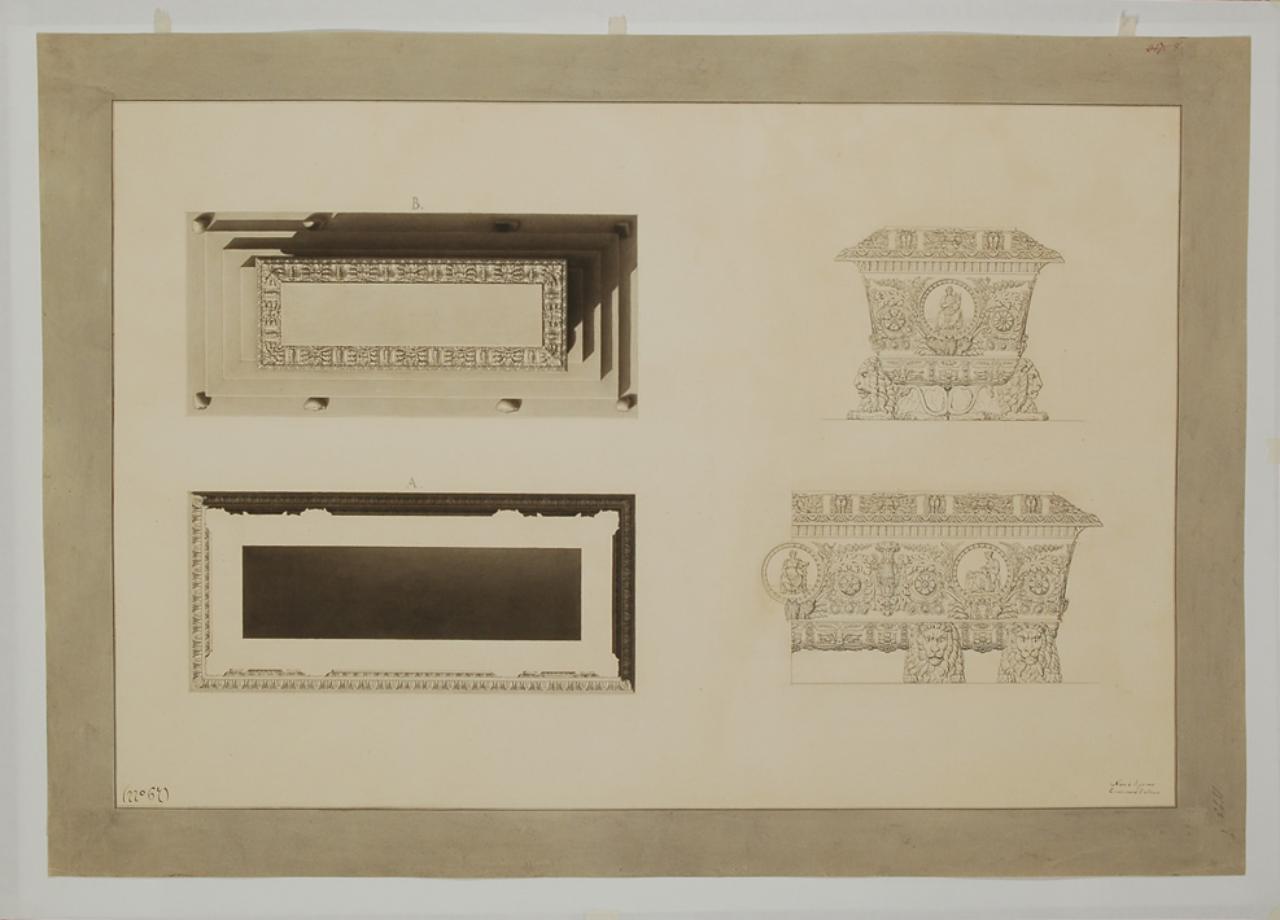 pianta, sezione e alzati. ornato: urna sepolcrale