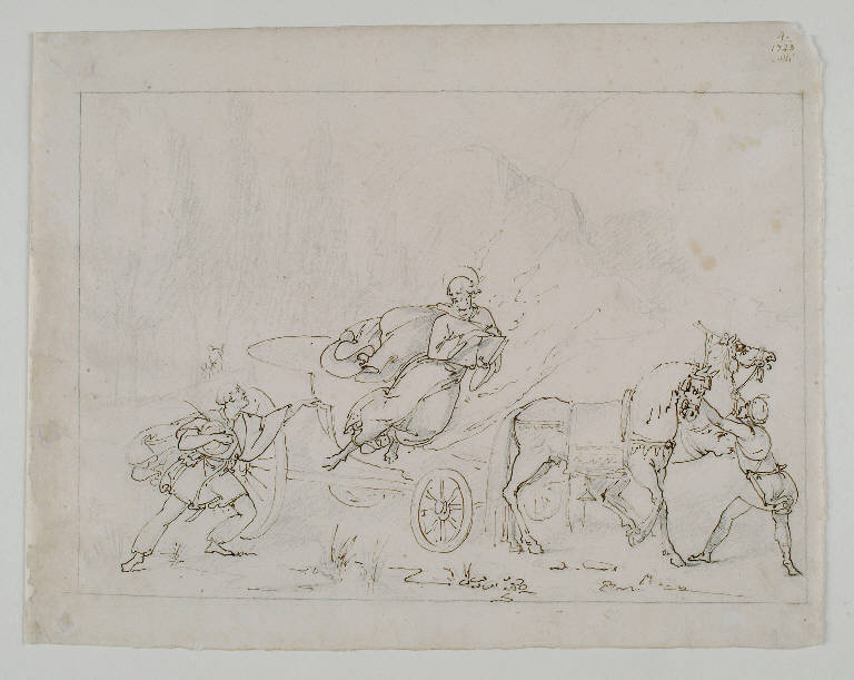 - NOTIZIE STORICO CRITICHE Gli studi più recenti (CASARIN, 2003, pp. 170-171) propongono di interpretare il disegno come un momento conclusivo dell'episodio degli Atti degli Apostoli, il cui preludio è raffigurato in un altro disegno della collezione (vd. 0300144685) , che presenta caratteristiche molto simili a questo.