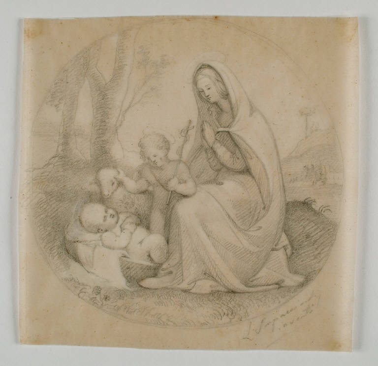 - NOTIZIE STORICO CRITICHE L'opera trae spunto da modelli quattro-cinquecenteschi, e va segnalata la vicinanza con il disegno minardiano liberamente ispirato a "La bella giardiniera", dipinto di Raffaello conservato al Louvre (SUSINNO, Disegni di Tommaso Minardi (1787-1871), catalogo della mostra alla Galleria Nazionale d'Arte Moderna di Roma, Roma, De Luca, 1982, vol. I°, pp. 222-225).
