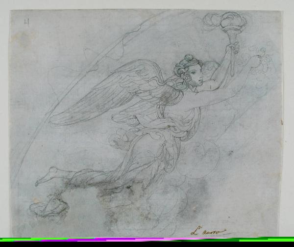 - NOTIZIE STORICO CRITICHE Il disegno fu in passato attribuito a Luigi Impaccianti, e poi assegnato a Sanguinetti (CASARIN, 2003, pp. 142-143) sulla base del confronto con l'"Aurora" (MIRAGLIA, vol. II, 1995, scheda 1112, p. 313) presente nella serie di "Ventinove figure allegoriche" eseguite dall'artista per la Calcografia Camerale di Roma tra 1829 e 1833. Se tale serie è ispirata dall'"Iconologia" di Cesare Ripa (vd. in particolare RIPA, 1603, p. 34), i modelli iconografici sono quelli rinascimentali cari alla cultura purista.