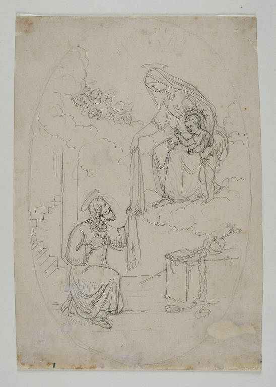 SAN LUIGI IX°, RE DI FRANCIA, RICEVE UNA STOLA DALLA MADONNA CON BAMBINO.