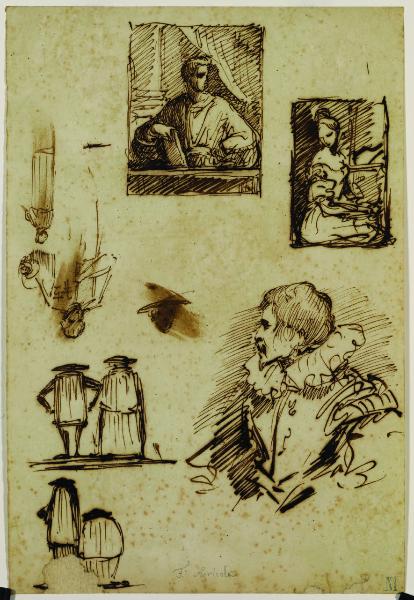 Studi per un ritratto maschile e uno femminile; Torquato Tasso (?); tre coppie di figure. Studi per un ritratto maschile e uno femminile; Torquato Tasso (?); tre coppie di figure