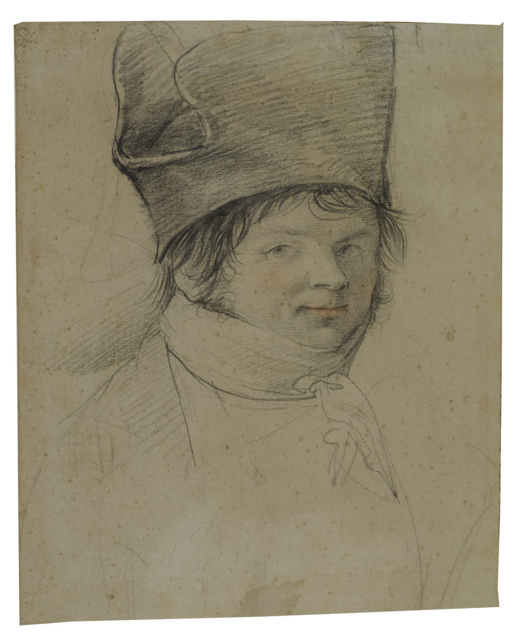 - NOTIZIE STORICO CRITICHE Il disegno presentava sul recto l'iscrizione "Carlo Codega", oggi non più presente. La scritta - che ancora si intravede - fu cancellata fra il 1944, quando il disegno fu riprodotto nel catalogo curato da Nicodemi, e il 1975, anno in cui fu esposto a Brera, ripulito dall'indicazione a matita. Lo stesso nome di fantasia dell'uomo ritratto mostra un'inusuale consonanza con un famoso modo di dire lombardo. Il volto del personaggio emerge quasi a fatica fra il gran cappello - identificato da Brizio (1975) con un colbacco - e la cravattona annodata al collo.
