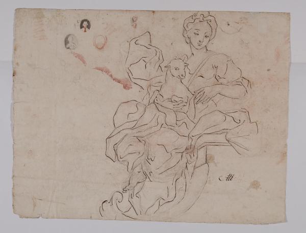 Madonna (o sant'Agnese) seduta con agnello in grembo e studi per cammei