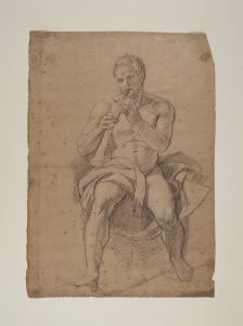- NOTIZIE STORICO CRITICHE I tre disegni (D8, D9, D10) sono studi pressoché definitivi per la Contesa fra Apollo e Marsia, episodio del ciclo affrescato da Appiani fra 1795 e 1796 sulle pareti di Palazzo Sannazzaro, poi Prina. L'alta qualità dei lavori lascia supporre che si tratti di opere allo stadio avanzato, modelli finali in vista della trasposizione delle stesse figure (come suggerirebbe, inoltre, la presenza della quadrettatura) sul cartone, ancora esistente e conservato presso la Galleria d'Arte Moderna di Milano (inv. 584). I tre personaggi sono definiti nei singoli particolari e modellati plasticamente attraverso accordi di luce e ombra, ottenuti con il tratteggio insistito della matita nera e i tenui tocchi di biacca. Pur decontestualizzati dalla scena in cui sono inseriti - come ben si comprende dalle pose di Pallade e re Mida, ritratti di profilo nell'atto di osservare Marsia mentre suona l'aulos - i disegni conservano intatta la loro forza in virtù della monumentalità e dell'intensità che queste figure sembrano emanare.\nSulla scorta di un'iscrizione presente sul verso del foglio - "Peppina Appiani" - è possibile ipotizzare che il disegno appartenesse a Giuseppina, figlia dell'artista.