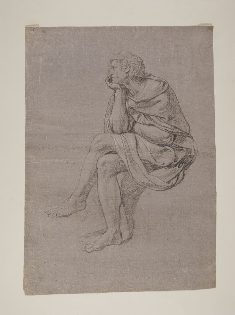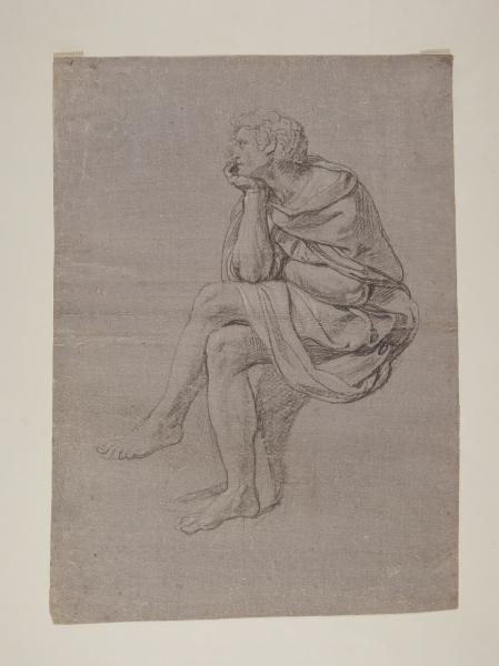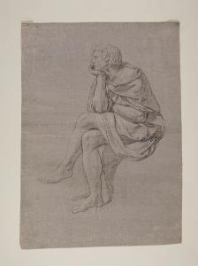- NOTIZIE STORICO CRITICHE I tre disegni (D8, D9, D10) sono studi pressoché definitivi per la Contesa fra Apollo e Marsia, episodio del ciclo affrescato da Appiani fra 1795 e 1796 sulle pareti di Palazzo Sannazzaro, poi Prina. L'alta qualità dei lavori lascia supporre che si tratti di opere allo stadio avanzato, modelli finali in vista della trasposizione delle stesse figure (come suggerirebbe, inoltre, la presenza della quadrettatura) sul cartone, ancora esistente e conservato presso la Galleria d'Arte Moderna di Milano (inv. 584). I tre personaggi sono definiti nei singoli particolari e modellati plasticamente attraverso accordi di luce e ombra, ottenuti con il tratteggio insistito della matita nera e i tenui tocchi di biacca. Pur decontestualizzati dalla scena in cui sono inseriti - come ben si comprende dalle pose di Pallade e re Mida, ritratti di profilo nell'atto di osservare Marsia mentre suona l'aulos - i disegni conservano intatta la loro forza in virtù della monumentalità e dell'intensità che queste figure sembrano emanare.\nSulla scorta di un'iscrizione presente sul verso del foglio - "Peppina Appiani" - è possibile ipotizzare che il disegno appartenesse a Giuseppina, figlia dell'artista.