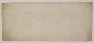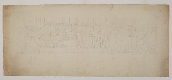 - NOTIZIE STORICO CRITICHE Si tratta di uno dei disegni preparatori che furono eseguiti in vista della traduzione in incisione del grandioso ciclo decorativo dedicato ai Fasti di Napoleone e realizzato da Appiani nella Sala delle Cariatidi di Palazzo Reale a Milano, fra 1800 e 1807. Il successo delle tele dipinte a tempera a monocromo fu tale che già nel 1805, quando l'intervento pittorico era ancora in corso d'opera, il viceré Eugenio di Beauharnais, per ordine di Napoleone, commissionò allo stesso Appiani una traduzione calcografica, di cui l'imperatore voleva servirsene per fini propagandistici. A capo dell'impresa fu nominato Giuseppe Longhi, tra i massimi incisori dell'epoca e professore all'Accademia di Brera, coadiuvato dallo stesso Appiani, che ne curò la supervisione; tra gli incisori che collaborarono all'operazione, furono scelti Giuseppe Benaglia, Michele Bisi e Francesco e Giuseppe Rosaspina. Per mantenere gli effetti pittorici del monocromo, si scelse di utilizzare la tecnica dell'acquaforte ritoccata a bulino. Sebbene non vi siano notizie certe sulla paternità dei disegni preparatori per le tavole, è plausibile che fu lo stesso Appiani a realizzarli, o, almeno, a supervisionarne l'esecuzione. I fogli furono poi affidati ai collaboratori: a Longhi fu lasciata l'esecuzione delle matrici relative alle scene principali, che servirono poi da modello per gli altri acquafortisti. La scena raffigura la Festa della Federazione della Repubblica Cisalpina (9 luglio 1797), un episodio dell'epopea napoleonica strettamente intrecciato con le vicissitudini della città di Milano. La proclamazione della Repubblica, che seguì l'emanazione della costituzione, ebbe luogo nel Campo di Marte, nei pressi della porta orientale, e coinvolse alcuni fra i più eminenti membri della società milanese. Tra i diversi personaggi riconoscibili, particolare è l'inserimento di Vincenzo Monti, all'epoca assente da Milano, ma collocato nella scena in virtù della solida amicizia che lo legava ad Appiani, quale massimo esponente dell'arte poetica dell'Italia napoleonica. La scena fu tradotta in incisione da Giuseppe Benaglia.